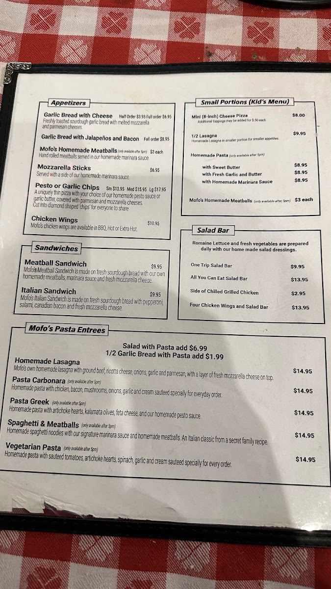 The atmosphere at Mofos Pizza and Pasta is another highlight. Customers describe it as homey and welcoming, a relaxed spot that’s perfect for families and friends. Cleanliness is evidently a priority, creating a comforting environment where you can enjoy your meal without distractions. Diners have remarked on the friendly and attentive service, making each visit feel special and personalized. As one delighted patron put it, the staff “brought us water and plates and utensils” even during a busy takeout order, showcasing a level of care not often found in casual dining.